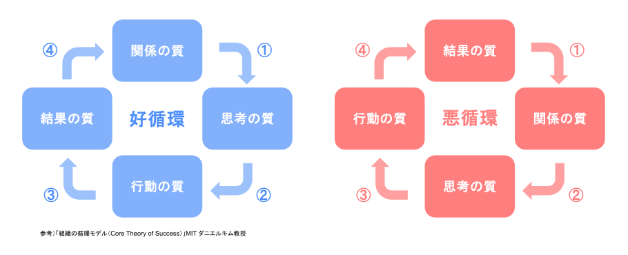 結果の質を先に追い求めてもメンバー同士の関係性が希薄であればプレッシャーとなり、思考や行動の質も悪くなってしまう。