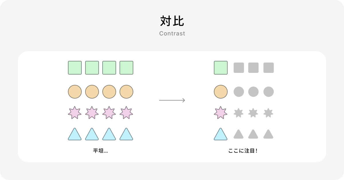 4. 対比(Contrast):異なる要素の間に組織的な階層構造を作りだす